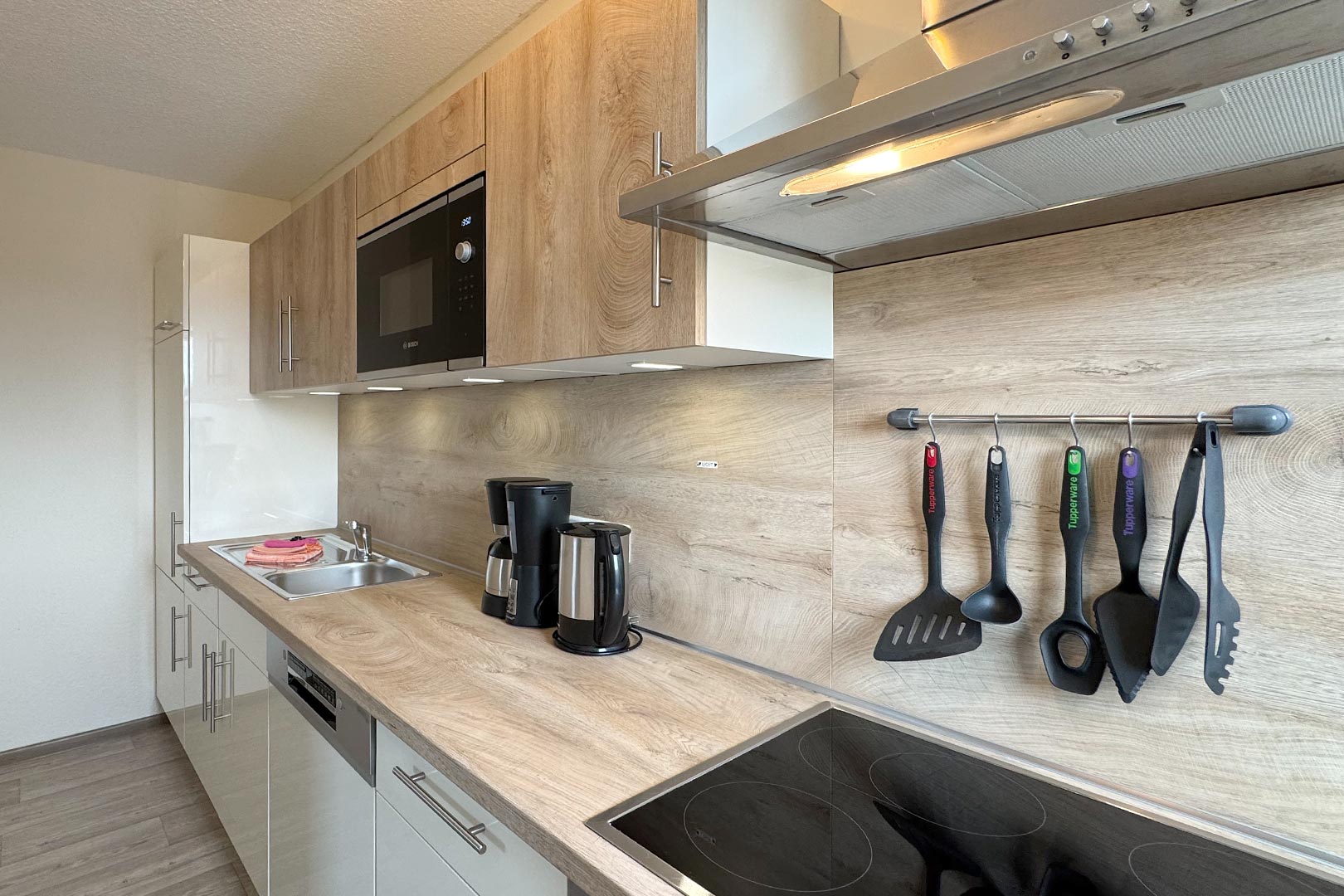 • Küche (Geschirrspüler, E-Herd mit Cerankochfeld sowie Backofen, Mikrowelle, Kaffeemaschine)